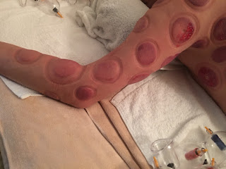 最近、テレビなどで話題のデトックス(体内の有害物の排出)効果が吸い玉にもあります。施術後、身体から吸い玉を外したときにものすごい悪臭がし、分泌物で皮膚がヌルヌルした状態になっていたりします。これは、吸い玉によって体内から有害な成分が排出されたことを物語っています。血液が運び出す老廃物の大部分は腎臓で分離され、尿として排出されますが、皮膚からも吸い玉によってこの動きが増進されるわけです。